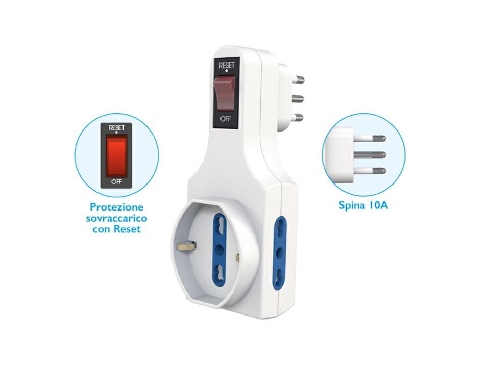 Adattatore con Interrut. di Protez. 2 Biprese - 1 Schuko - Sp.10A+T
